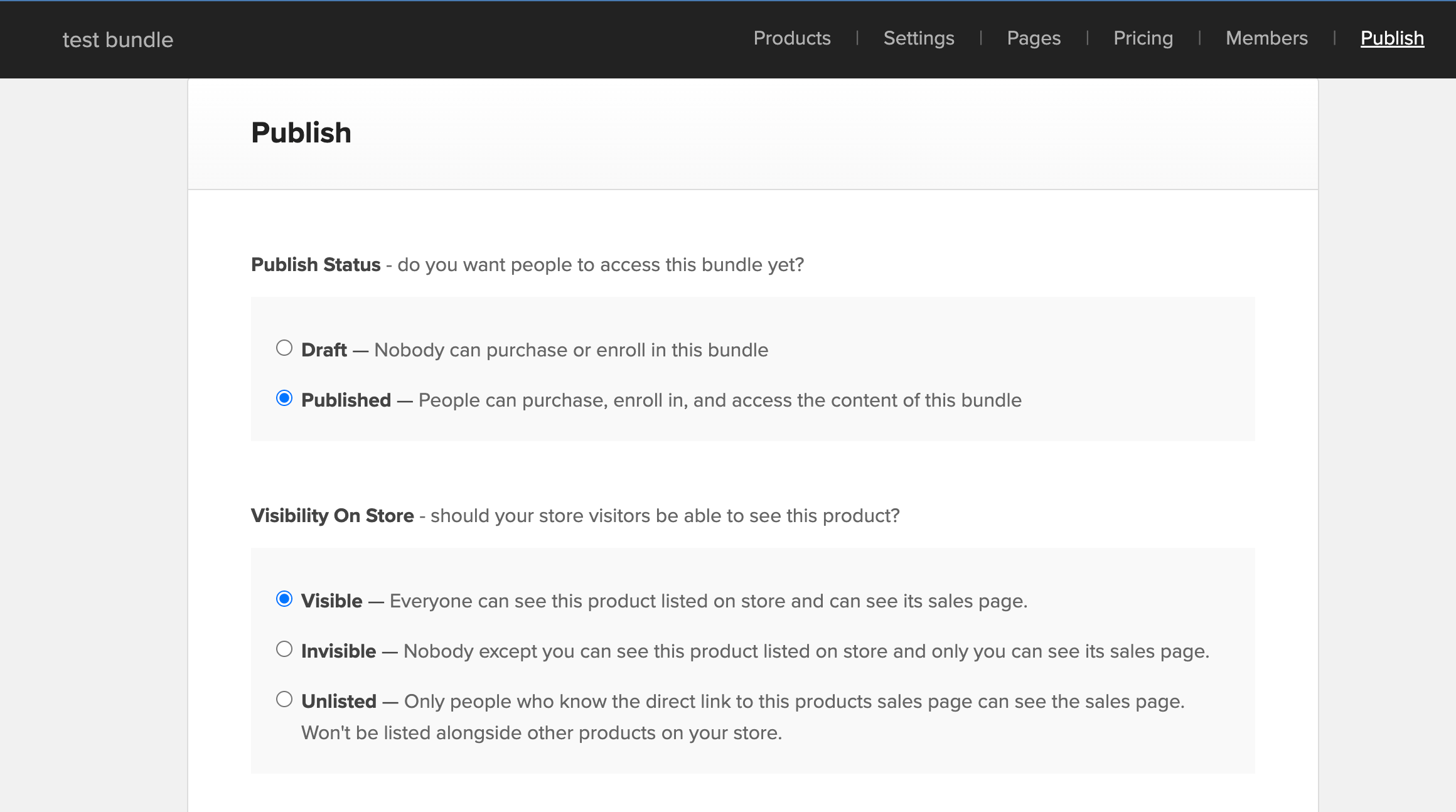 Yes! You can change a product’s visibility from Visible to Invisible or Unlisted at any point through your product settings. However, this will affect accessibility for your previous customers who purchased a product. If you switch to Invisible, they will no longer be able to download the product.