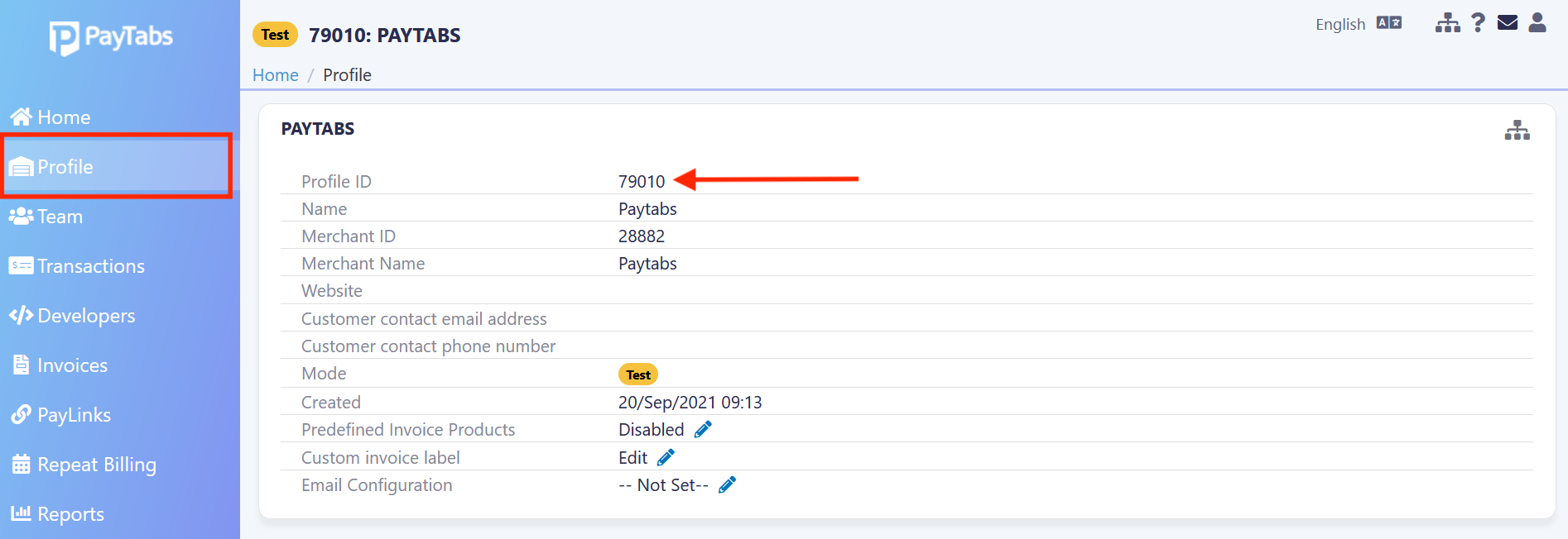 4) Separately, go to the Profile tab from the left navigation bar, copy the Profile ID, and paste it into the corresponding fields on your Payhip dashboard.